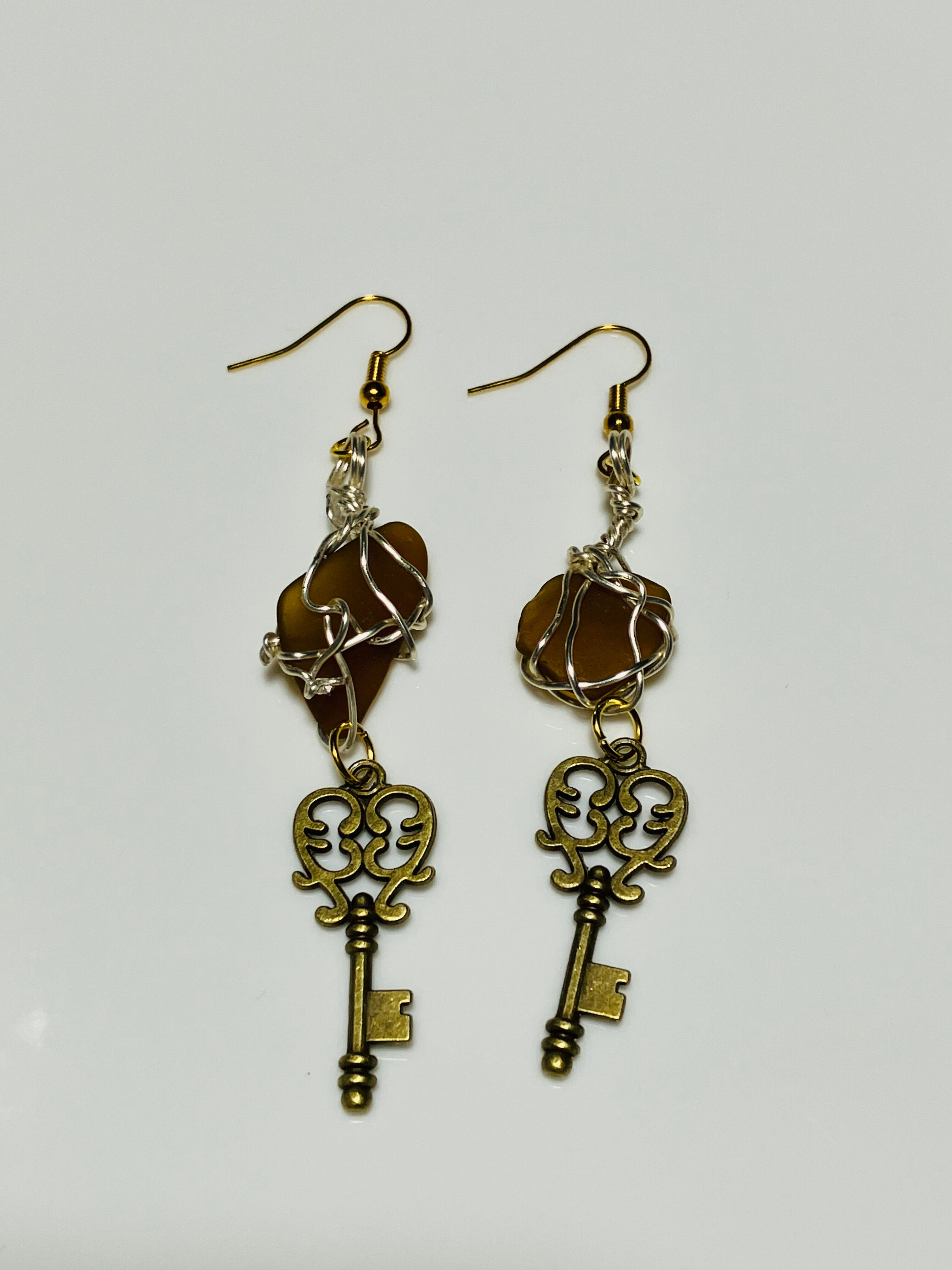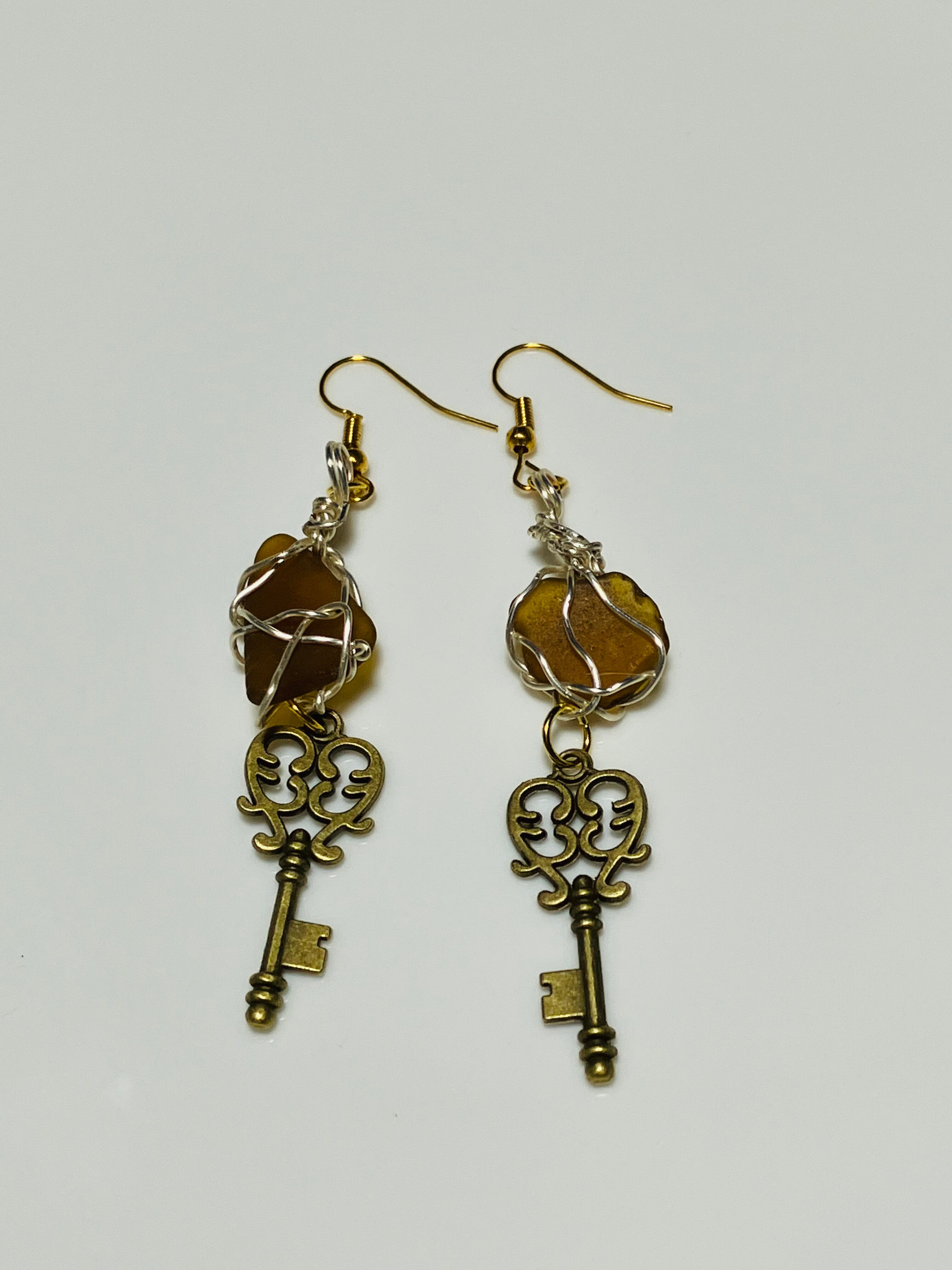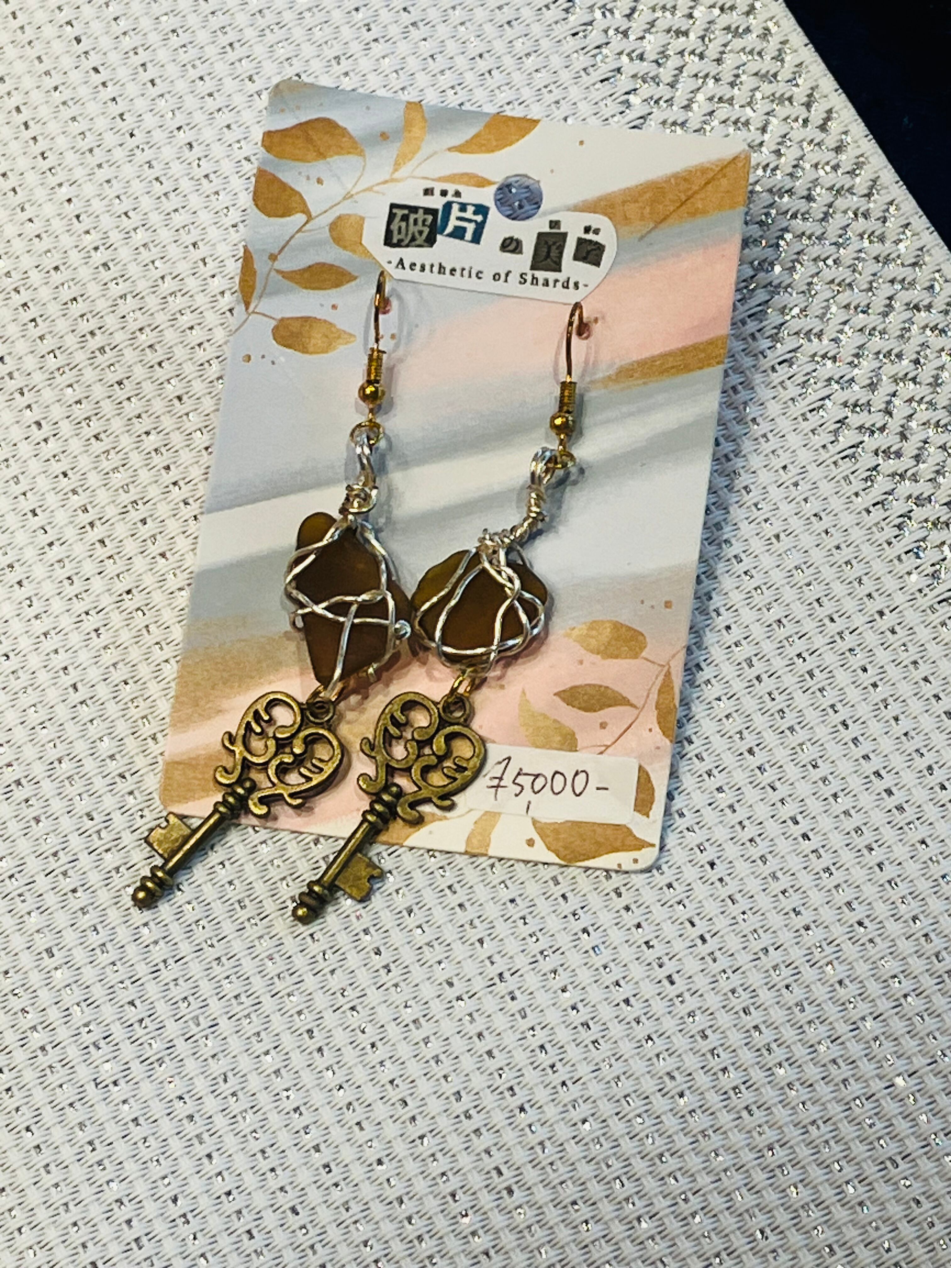 シーグラスに、鍵モチーフが調和した、特別なアクセサリーに仕上げました。どんなシーンにおいても華やかさと独自の印象を与えてくれます。