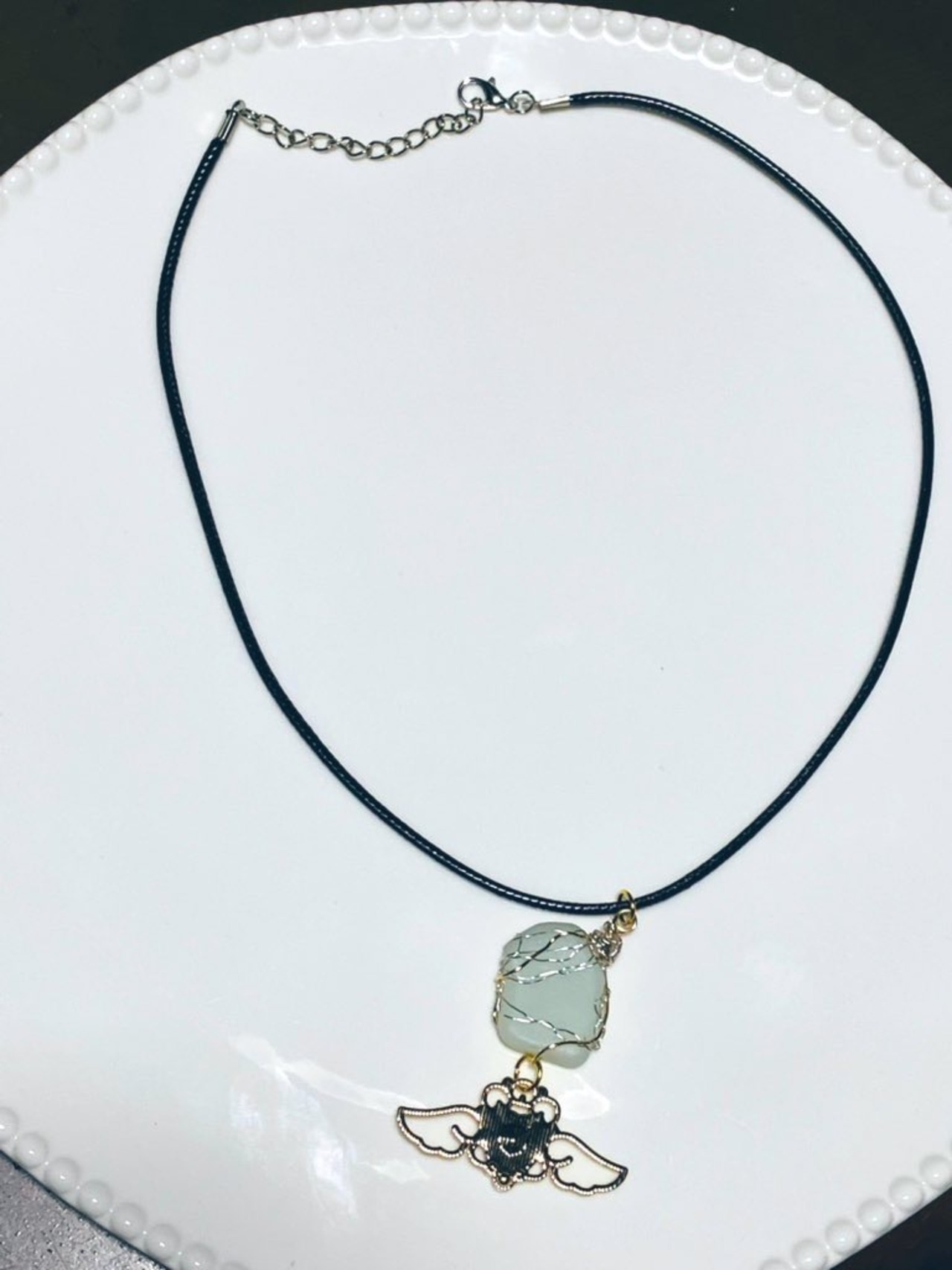 レアな艶消しホワイトのシーグラスを使用したペンダント「国産高級車に乗ってそうな女子が着けてそうなやつ卍」です。
