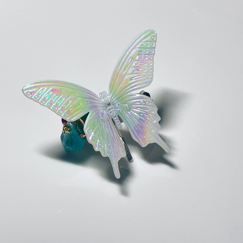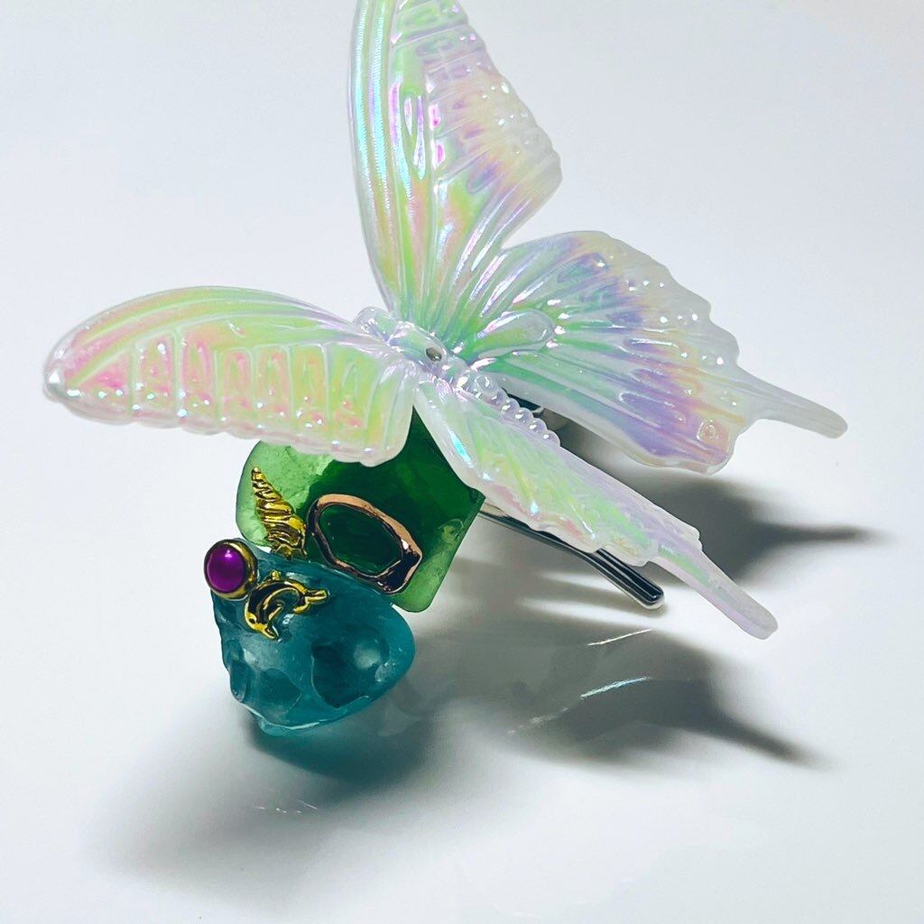 大きな蝶が大胆にあしらわれたポニーフック「平成≠″ャノレ(ギャル)」です。