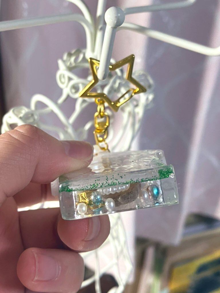 材質:ガラス、レジン、プラスチック、透明フィルム、金属(キーホルダー部分)