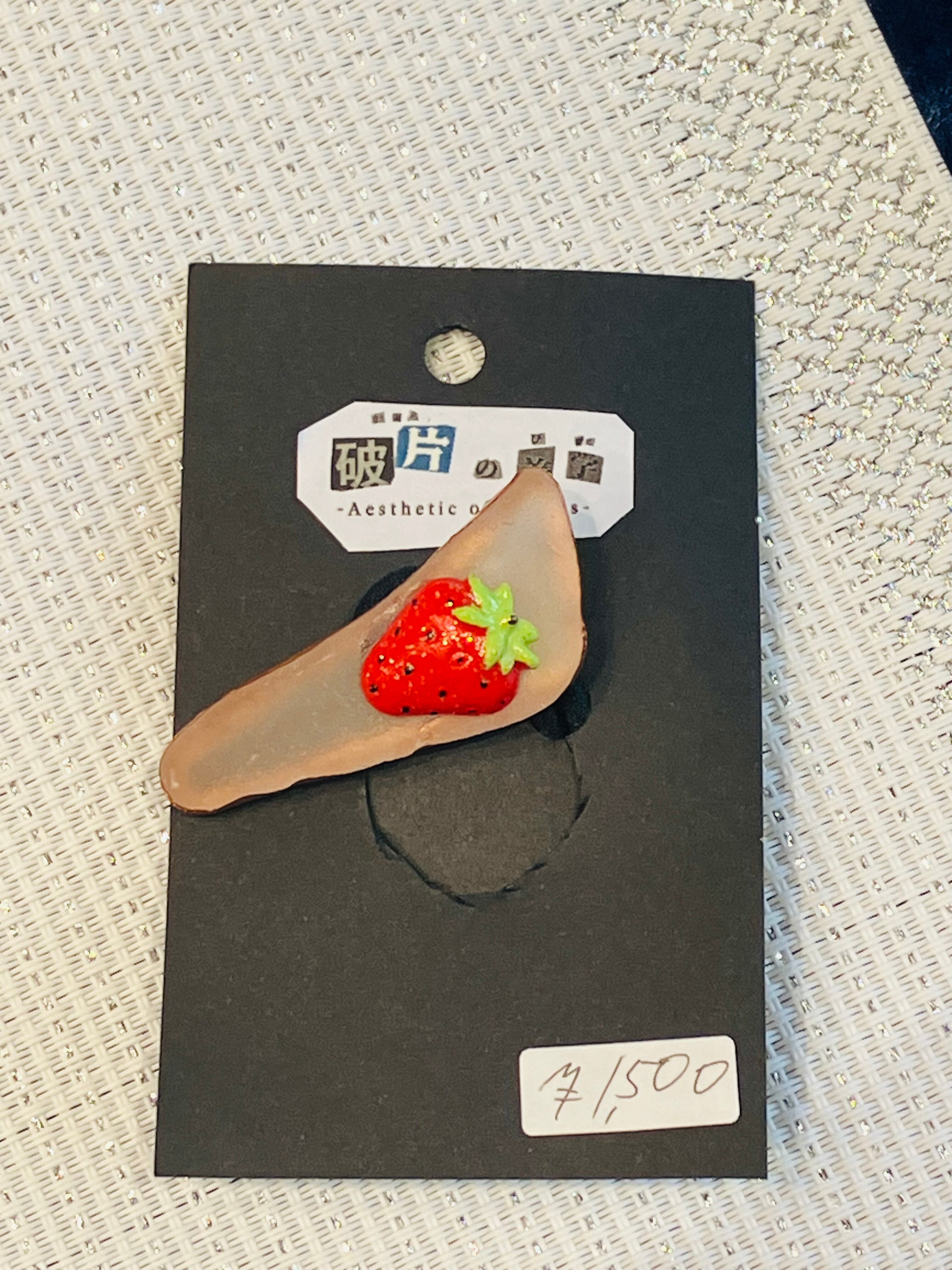 シーグラスを使用したヘアゴム「ショートケーキ」は、かわいらしい苺モチーフがワンポイントであしらわれた魅力的なアイテムです!