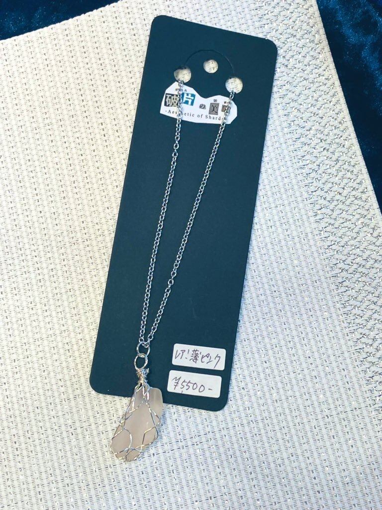 レアな色の薄ピンクのシーグラスを使用したネックレス「Sunset Pink」は、ワイヤーアートで美しく仕上げられた魅力的なアイテムです!